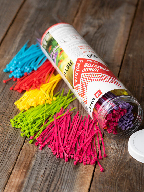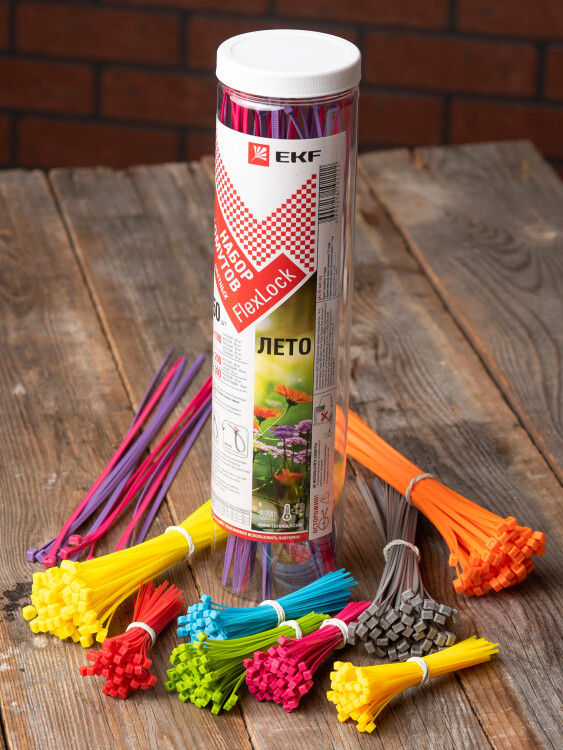 EKF PROxima Набор хомутов цветных "Лето" (450 шт.): 2,5х100, 3,6х200, 3,6х300 FlexLock