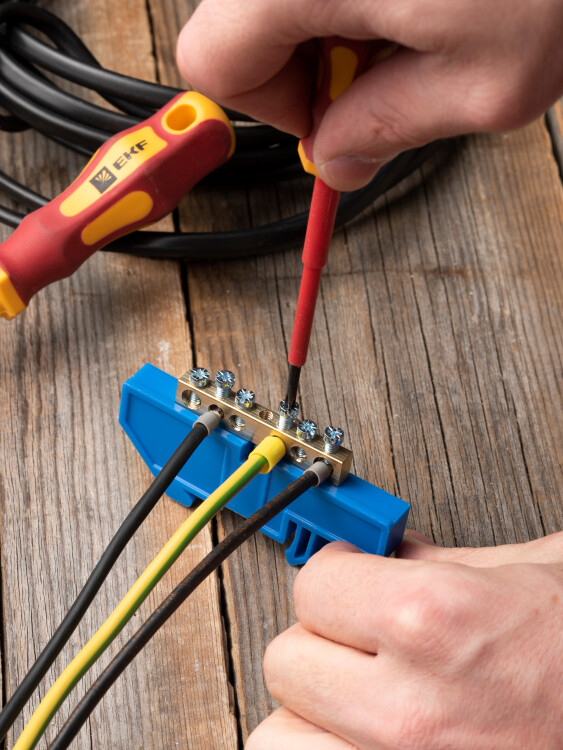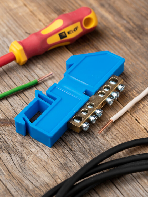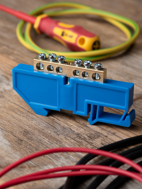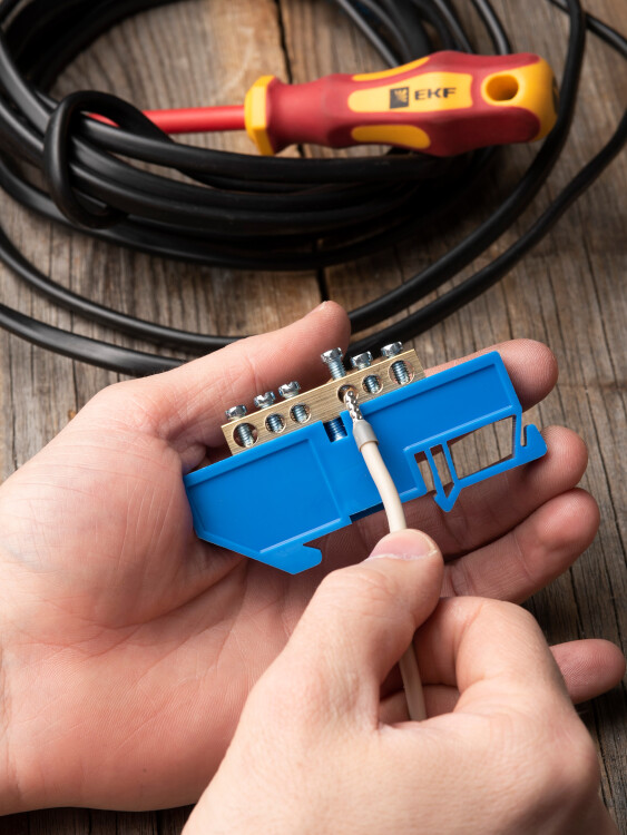EKF PROxima Шина "0" N (6х9мм) 6 отверстий латунь синий изолятор на DIN-рейку.