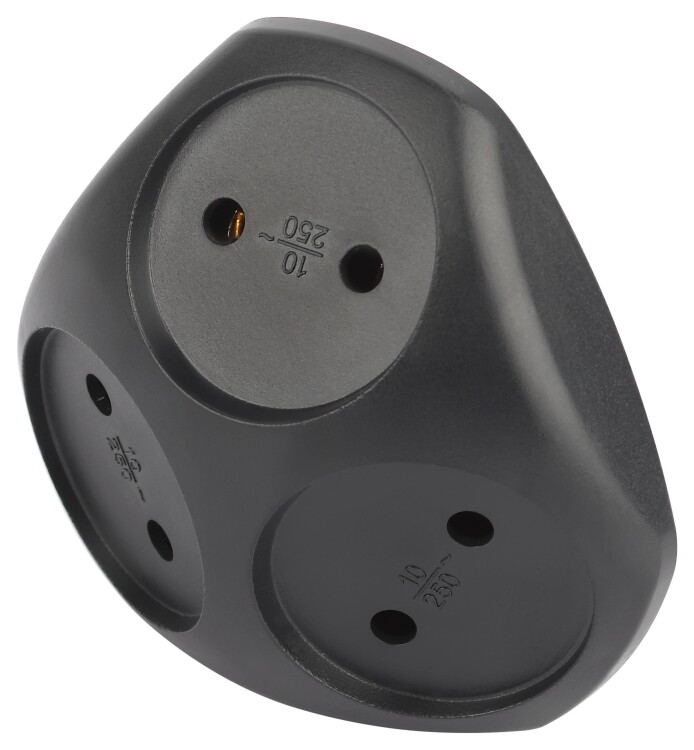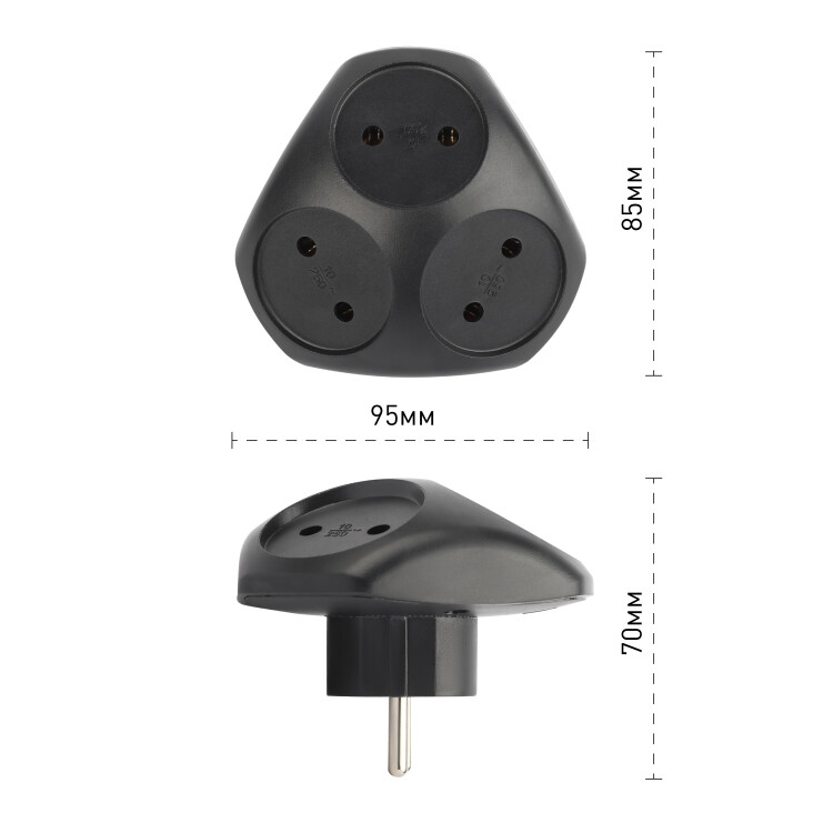 Сетевой разветвитель (тройник) ЭРА SPx-3-B на 3 розетки, без заземления. Цвет-черный. Максимальная мощность - 10А/2200 Вт, материал корпуса - полипропилен (пластик премиум сегмента). Эксклюзивный продакт-дизайн.