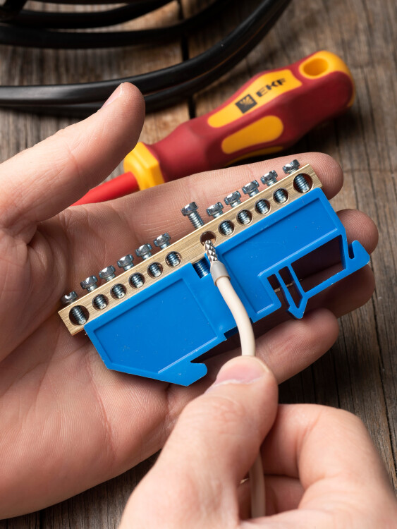 EKF PROxima Шина "0" N (6х9мм) 12 отверстий латунь синий изолятор на DIN-рейку.