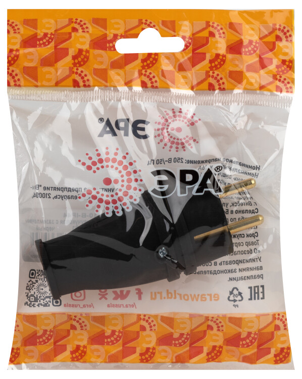 ЭРА Вилка VX10-B-IP44 каучуковая c заземлением 16А IP44 прямая черная