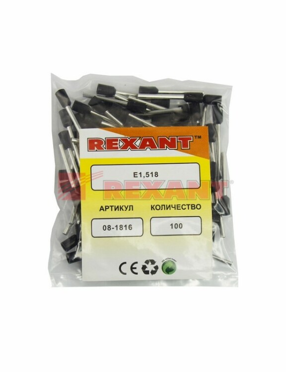 REXANT Наконечник штыревой втулочный изолированный F-18мм 1,5мм² (НШВи 1,5-18) черный.
