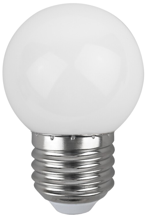 Декоративная светодиодная лампа ЭРА "Белт-лайт" с цоколем Е27 и колбой шар (Р45) белого цвета. Мощность - 1 Вт. Идеально подходит для использования в уличной гирлянде-конструкторе ЭРА "Белт-лайт", дающей возможность самостоятельного дизайна и монтажа праздничной иллюминации. В составе гирлянды-конструктора позволяет создавать уникальное праздничное освещение по индивидуальным параметрам и для конкретных задач. Вы сами выбираете длину подсветки, цвет ламп и расстояние между источниками света. Это идеальное решение для декора фасадов зданий, оформления витрин, общественных пространств на свежем воздухе. Другие элементы гирлянды-конструктора: патрон Б0049176, кабель Б0049175, набор для подключения (шнур питания с вилкой + коннектор) Б0049180, коннектор Б0049179, заглушка Б0049181, заглушка с крюком Б0049182. В ассортименте ЭРА LED-лампы "Белт-лайт" E27 разных цветов: синие, зелёные, красные, жёлтые, а также прозрачные. Колбы изготовлены из лёгкого ударопрочного пластика, такие лампы удобно транспортировать, использовать и хранить. Цоколь - из алюминия. Лампы ЭРА "Белт-лайт" универсальны: подходят к любому светотехническому прибору с патроном для Е27.