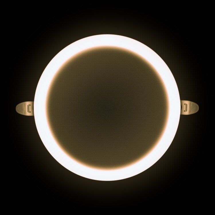Светодиодная встраиваемая безрамочная панель 06-108 излучает световой поток в 2040 Лм, потребляя при этом 24 Вт (18Вт+6Вт), что в итоге дает энергоэффективность 85 Лм/Вт. Особенностью данного изделия является 3-х ступенчатая регулировка уровня освещенности путем нажатия клавиши выключателя: 1) освещение всей поверхности плафона, угол рассеивания 180°; 2) концентрированное освещение внутреннего диаметра, угол рассеивания 120°; 3) засветка торцевой части панели, эффект «кольцевого освещения». Вторая особенность панели – регулировка крепежных зажимов под посадочное отверстие Ø55-155 мм. Третья особенность – безрамочный дизайн плафона, благодаря чему возможна повышенная освещенность с углом рассеивания 180°. Размер изделия Ø170х21мм. Цветовая температура 4000К наиболее близка к естественному солнечному свету. Отдельный от корпуса драйвер имеет компактный размер. А благодаря удобному коннектору для соединения со светильником может быть легко заменен. Панель по способу монтажа является встраиваемой.