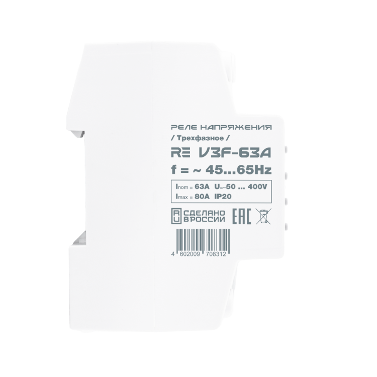 Реле напряжения нового поколения RE серии V3F предназначено для контроля и защиты промышленного и бытового однофазного и трехфазного оборудования от повышенного или пониженного напряжения пропадания напряжения на одной фазе асимметрии фаз, а также порядка чередования фаз (функция отключаемая) Реле напряжения RE V3F-63A может работать с бытовой электросетью с частотой 50Гц и с источниками напряжения с нестабильной «плавающей» частотой в пределах 45-65Гц (генераторы и др.). Для этого в меню настроек нужно выбрать соответствующий режим работы.