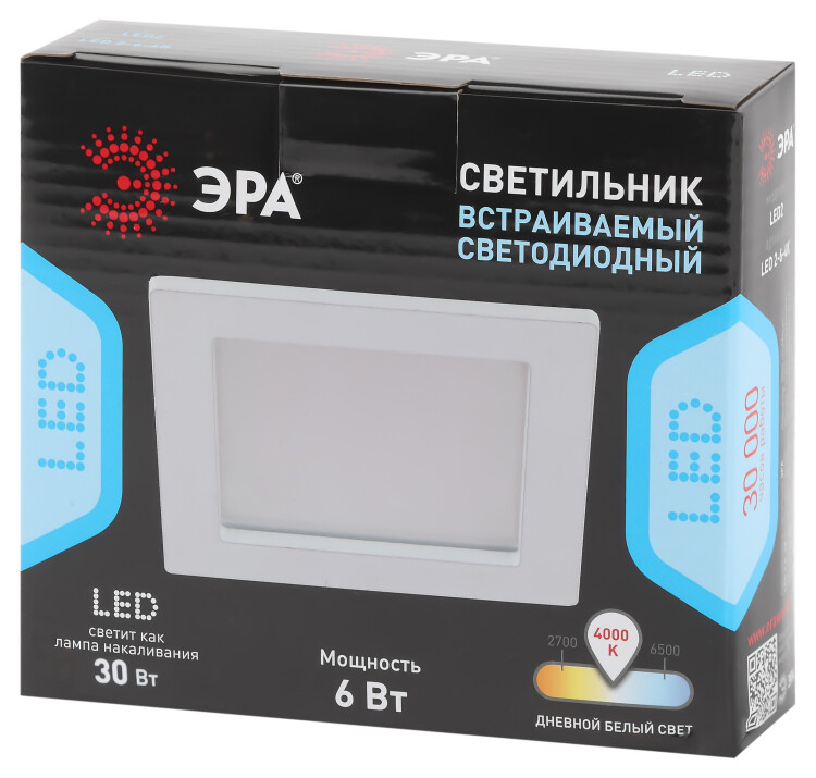 Точечный светильник LED 2-6-4K предназначен для встраивания в потолок или стены. Он идеально подойдет для самых разных целей – с помощью таких светильников можно подчеркнуть отдельные зоны в комнатах и успешно расставить акценты. С помощью встраиваемых светильников можно подсвечивать картины, постеры или интерьерные молдинги. LED 2-6-4K выполнен из алюминия и стекла, отличающихся своими прочностью и долговечностью. Внешний размер светильника - 118*118 миллиметров, а монтажный - 95 миллиметров. Тип рассеивателя - матовый, он способствует приятному и мягкому распространению света в комнате. Для данной модели не нужна лампа, LED 2-6-4K работает при помощи встроенных светодиодов, срок службы которых составляет 30 000 часов. Мощность составляет 6 Вт. Световой поток точечного светильника составляет 210 Лм. Светильник обладает цветовой температурой в 4000К, что эквивалентно нейтральному дневному свету. Светильник белого цвета, благодаря чему его можно размещать в самых разных по стилю интерьерах: минимализм, фьюжн, модерн, прованс или скандинавский. Купив светильник Эра, вы сможете создать в своем доме атмосферу уюта и комфорта