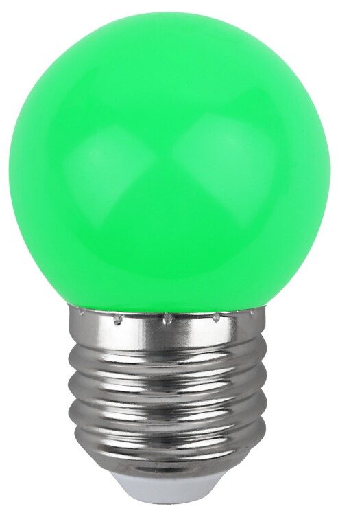 Декоративная светодиодная лампа ЭРА "Белт-лайт" с цоколем Е27 и колбой шар (Р45) зелёного цвета. Мощность - 1 Вт. Идеально подходит для использования в уличной гирлянде-конструкторе ЭРА "Белт-лайт", дающей возможность самостоятельного дизайна и монтажа праздничной иллюминации. В составе гирлянды-конструктора позволяет создавать уникальное праздничное освещение по индивидуальным параметрам и для конкретных задач. Вы сами выбираете длину подсветки, цвет ламп и расстояние между источниками света. Это идеальное решение для декора фасадов зданий, оформления витрин, общественных пространств на свежем воздухе. Другие элементы гирлянды-конструктора: патрон Б0049176, кабель Б0049175, набор для подключения (шнур питания с вилкой + коннектор) Б0049180, коннектор Б0049179, заглушка Б0049181, заглушка с крюком Б0049182. В ассортименте ЭРА LED-лампы "Белт-лайт" E27 разных цветов, в том числе прозрачные и матовые белые. Колбы изготовлены из лёгкого ударопрочного пластика, такие лампы удобно транспортировать, использовать и хранить. Цоколь - из алюминия. Лампы ЭРА "Белт-лайт" универсальны: подходят к любому светотехническому прибору с патроном для Е27. Создают необычное цветное свечение определённого оттенка. Помогают воплощать в жизнь смелые дизайнерские идеи.