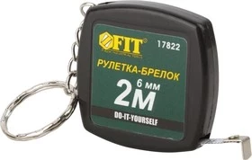 Рулетка-брелок 2 м x 6 мм, черная квадратная FIT
