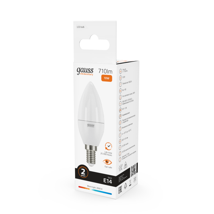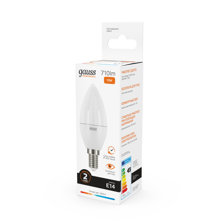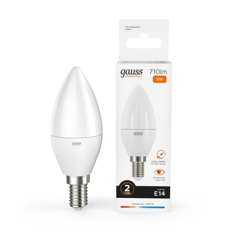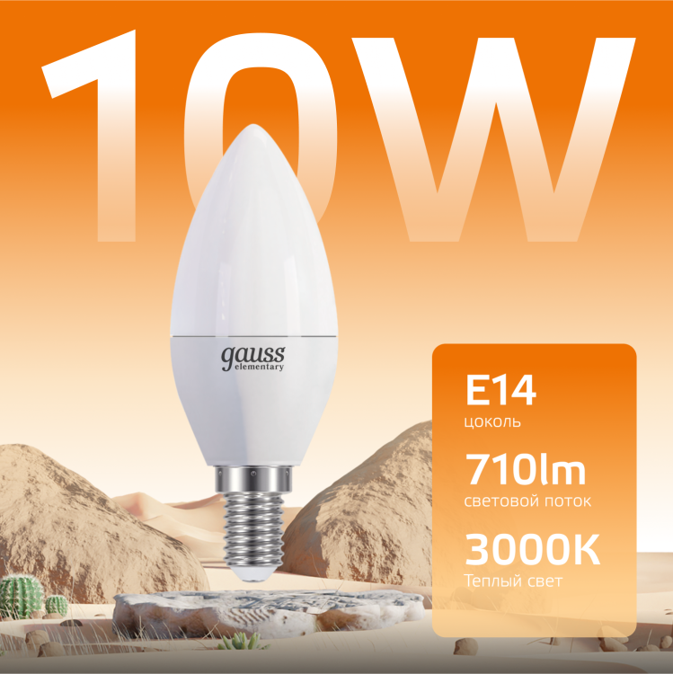 Gauss Лампа Elementary Свеча 10W 710lm 3000K Е14 LED