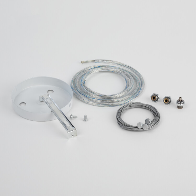 Понравившийся накладной светильник займет достойное место в комнате, если его закрепить тросовым подвесом SPB 6 компании ЭРА. Подвес позволяет произвести монтаж различных моделей настенно-потолочных светильников, стать дизайнером светового освещения своей квартиры или других помещений. В комплект входит основание с тремя цангами, 3 троса с карабинами для фиксации светильника и провод для подключения питания длиной 1,2 метра.
