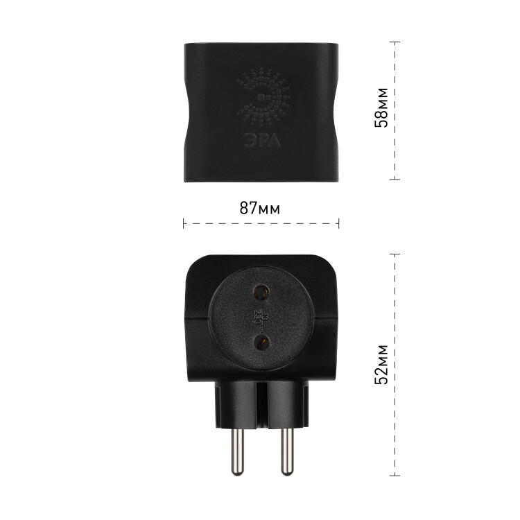 Разветвитель электрический Эра SP-4-B без заземления, 4 розетки, черный. Если в Вашем доме недостаточно розеток, чтобы одновременно подключить несколько электроприборов, то тройник марки Эра станет Вашим надежным помощником. Электрический разветвитель рассчитан на максимальную мощность 16А/3500Вт. Корпус выполнен из ударопрочного и негорючего пластика (поликарбонат). Модель тройника на 16А позволяет подключить мощные бытовые приборы общей нагрузкой до 3500Вт. Не бойтесь включить чайник, обогреватель или микроволновку. Дизайн разработан в России командой Эра Style.