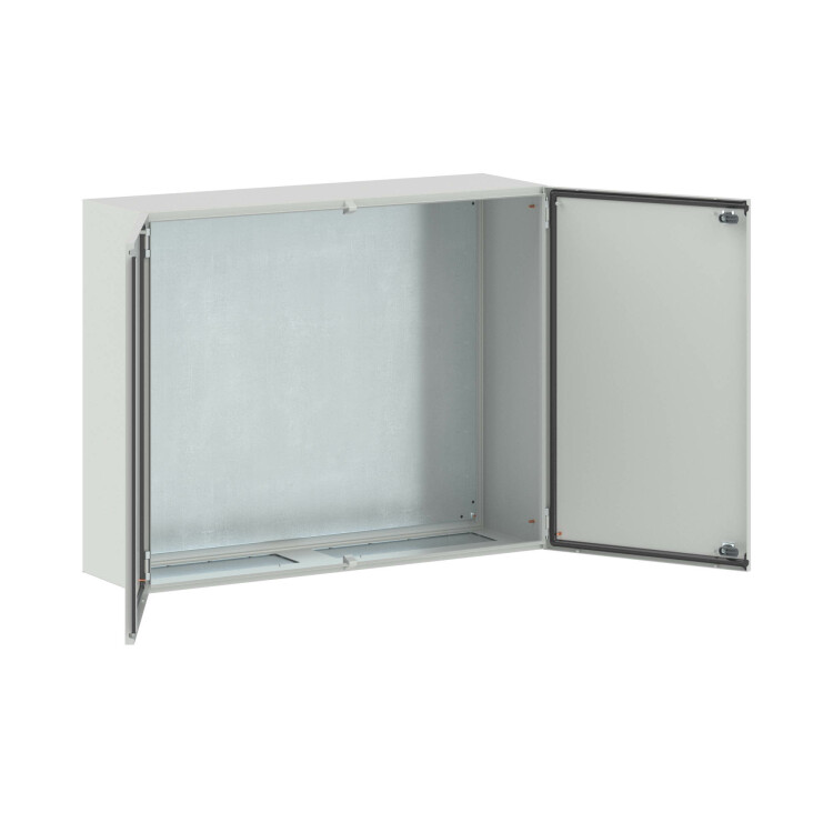 Навесные корпуса серии ST предназначены для систем автоматизации и распределения электроэнергии. Корпус, фланец изготавливаются из стали толщиной 1,2 мм, дверь из стали толщиной 1,5 мм с атмосферостойким порошковым покрытием, цвет RAL7035. Монтажная плата - из оцинкованной стали толщиной 1,8 мм. Степень защиты IP55, ударопрочность IK10, сейсмостойкость 9 баллов по шкале MSK-64, климатическое исполнение УХЛ1, ОМ2, ОМ3, группа горючести Г1. Комплект поставки: корпус, дверь двустворчатая, монтажная плата с двунаправленной разметкой, дверные рейки, поворотный замок 2 шт., сплошной фланец для ввода кабеля 2 шт., комплект заземления без проводов, монтажные аксессуары. Габариты 800х1000х300 (ВхШхГ) мм.