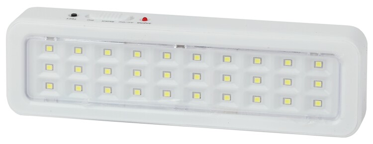 Светильник аварийный светодиодный. Область применения: Предназначен для освещения путей эвакуации, коридоров, проходов, запасных дверей; как эвакуационные или указательные светильники (при наличии пиктограмм). Световой поток 150Лм Режим работы от сети 230В, от аккумулятора. Номинальное время автономной работы 3 часа. Наличие кнопки "ТЕСТ" для проверки работы в аварийном режиме. Гарантия:3 года.Диапазон рабочих температур:(+1+35). Класс энергоэффективности:A. Климатическое исполнение:УХЛ4. Цветовая температура:6500K. Материал корпуса:пластик. Габариты: 202x57x30мм. Потребляемая мощность:3Вт. Степень защиты от окружающей среды:IP20. Тип рассеивателя: прозрачный. Тип кривой: Д.