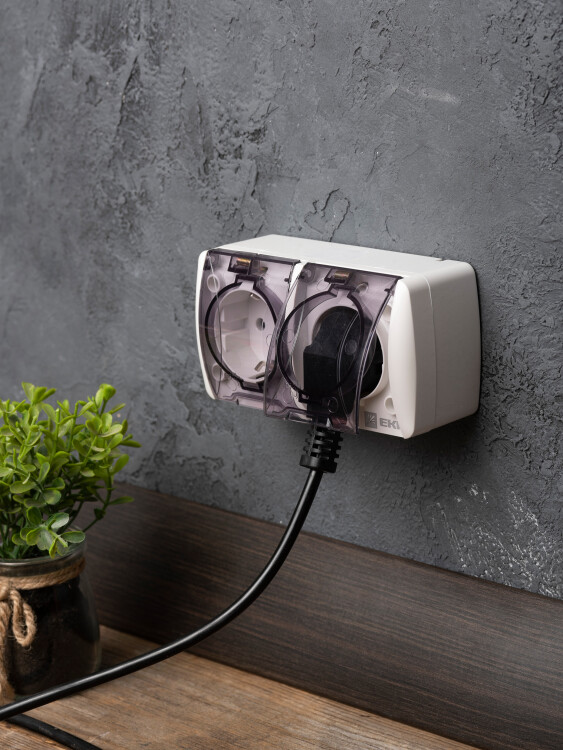Розетка двухместная EKF серии Владивосток с заземлением, без шторок и с крышкой позволяет организовать электроснабжение в условиях высокой влажности и пыльных помещениях, на улице при условии установки под навесом. Герметичные вводы с двух сторон изделия обеспечивают надежную защиту, позволяя использовать устройство в агрессивных условиях.