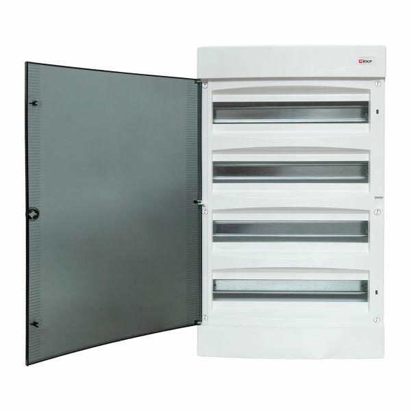 Корпуса пластиковые серии «Unix IP41» предназначены для сборки силовых распределительных и слаботочных щитов. На DIN-рейки устанавливается модульное оборудование. На монтажные платы - антенные разветвители, Wi-Fi роутеры, патч-панели и иное слаботочное оборудование. Щиты устанавливаются на поверхность стены. Ассортимент корпусов с din-рейками представлен размерами вместимостью до 72 модулей, по 12 или 18 модулей в ряду, с белой глухой или прозрачной тонированной дверью, с DIN-рейками или перфлорированными монтажными платами. Особенностью корпусов является плоское основание, упрощающее сборку и подключения внутри, лицевая панель Корпуса изготовлены из качественного глянцевого ABS-пластика, имеют минималистичный дизайн и впишутся в большинство интерьеров.