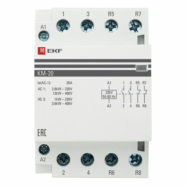 Модульные контакторы представляют из себя контактор в классическом корпусе модульного оборудования. Он состоит из неподвижных контактов, подвижных контактов, которые закреплены в подвижной части магнитной системы. Неподвижная часть магнитной системы закреплена жестко в корпусе КМ. Пружина препятствует смыканию контактов. При подаче напряжения на катушку управления в магнитной системе контактора возникает магнитное поле, которое, преодолевая сопротивление пружины, смыкает магнитную систему и замыкает контакты. При отключении напряжения с катушки управления пружина размыкает контакты. Возможна коммутация алюминиевым и медн ым проводом.