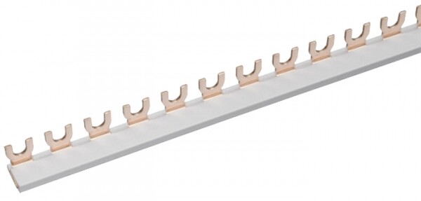 Шины соединительные представляют собой пластины, выполненные из меди (шины на 100 А – из луженой меди), закрепленные в корпусе из диэлектрического материала, не поддерживающего горение, и выпускаются стандартной длиной 1 метр. Шины соединительные делятся на два типа - FORK («вилка») и PIN («гребенка») на номинальные токи 63 и 100 А. Могут быть выполнены в одно- двух- трех- и четырехполюсном исполнений.
