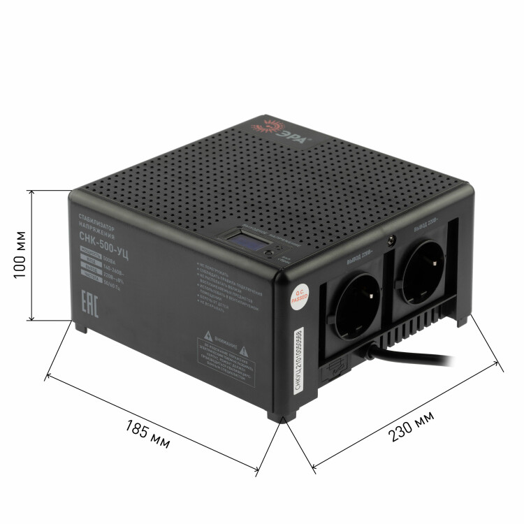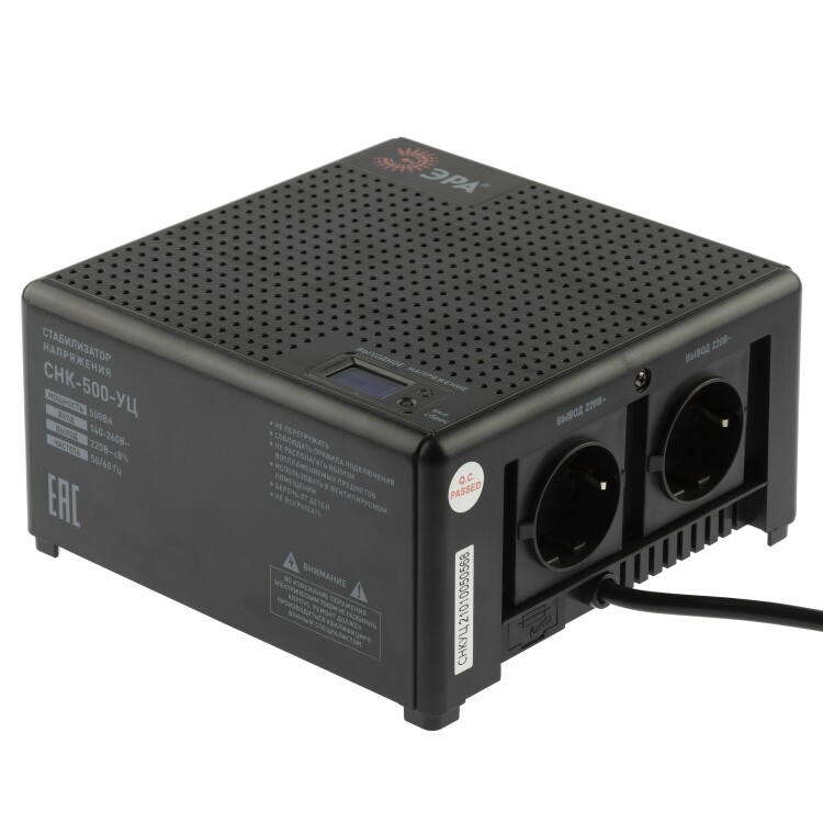 Стабилизатор напряжения компактный однофазный релейный цвет чёрный модели CНК-500-УЦ. Номинальные характеристики (полная мощность / диапазон входного напряжения): 500ВА 140-260В . Предназначен для поддержания стабильного однофазного напряжения питания бытовых приборов при отклонениях значений сетевого напряжения. Выбирая стабилизатор, нужно знать, какое электрооборудование будет к нему подключено: один прибор, группу приборов (наиболее чувствительных к перепадам напряжения в сети) либо вся домашняя (офисная) техника. Затем необходимо рассчитать суммарную мощность защищаемых электропотребителей. Основное условие выбора мощности стабилизатора напряжения - суммарная мощность подключаемой к нему нагрузки не должна превышать полной мощности самого стабилизатора (в противном случае автоматика стабилизатора будет их просто отключать). Точные значения мощности можно узнать из паспортных данных Вашего конкретного потребителя. Стабилизатор подбирается с запасом в 25-30% к его полной мощности.