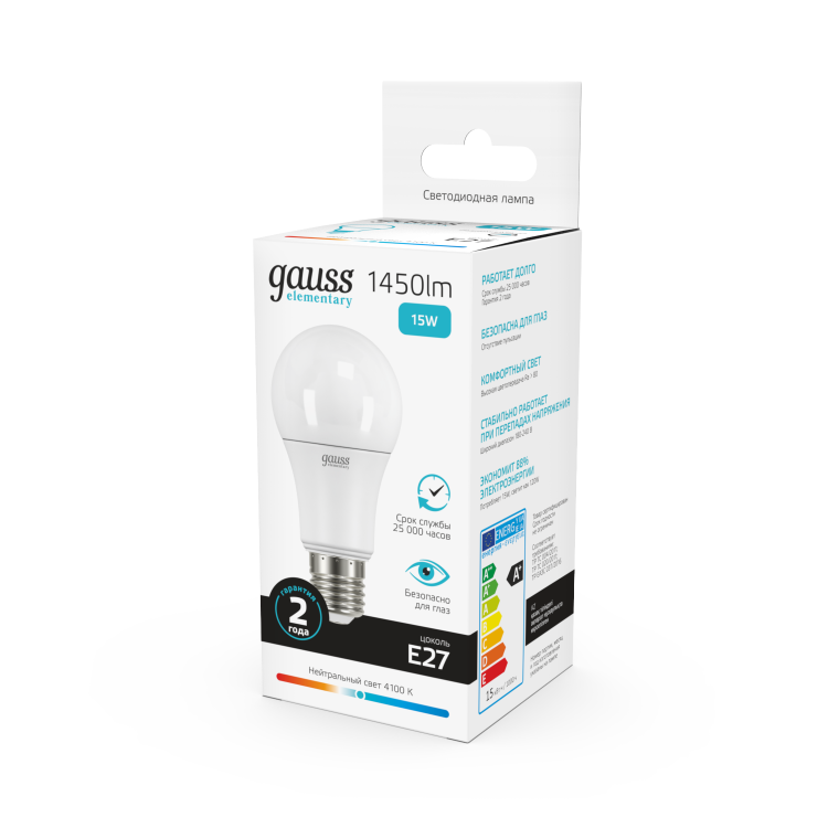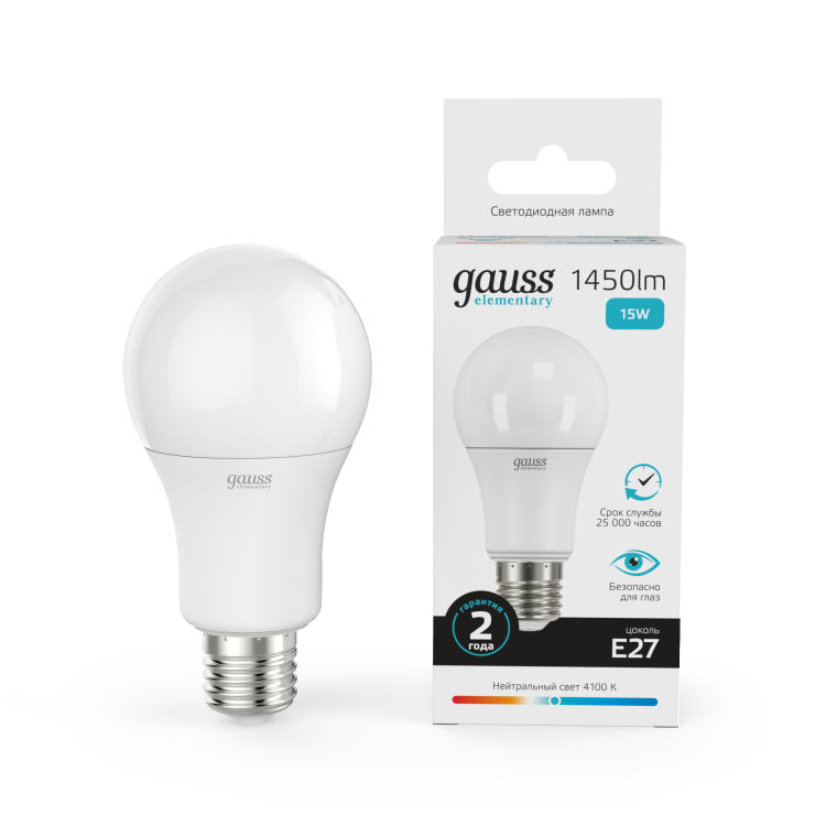 Лампа Gauss Elementary A60 сочетает всегда уместные энергоэффективность и функциональность с лаконичной формой.