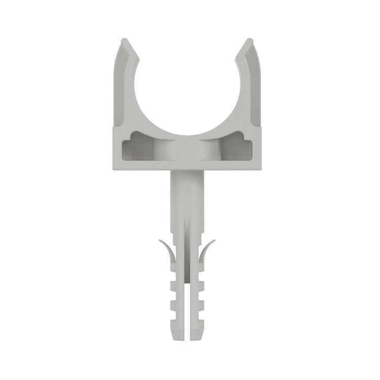 Держатель с защелкой и дюбелем предназначен для крепления жестких гладких и гофрированных труб к поверхности стен, потолков, полов и перегородок. Диаметр - 20 мм. Материал: полипропилен. Цвет серый RAL 7035. Элемент системы может эксплуатироваться при широком диапазоне температур: от –25°С до +60 °С.