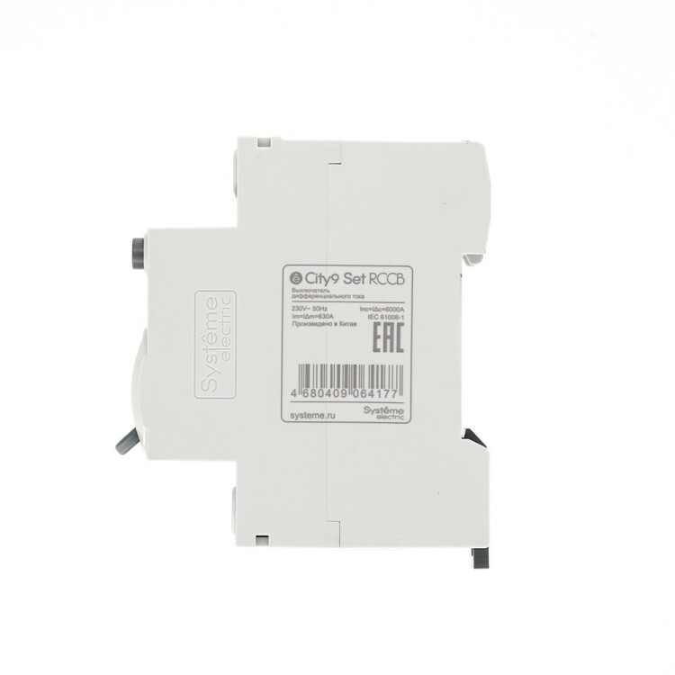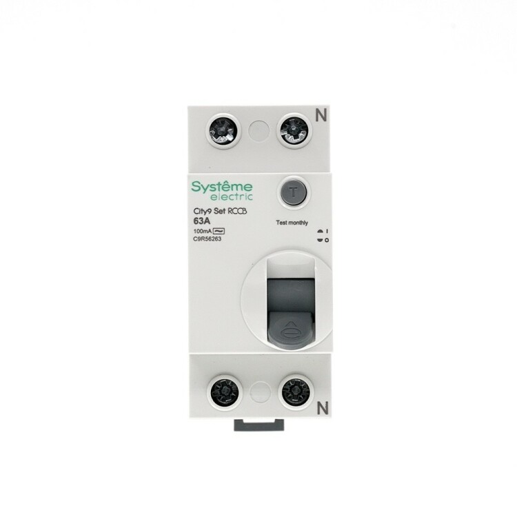 Выключатель дифференциального тока (ВДТ) и ли устройство защитного отключения (УЗО) серии City9 Set Systeme Electric, 2-полюсный, номинальный ток 63А, ток утечки 100 мА, тип АС, электромеханический. Применяется в электрических сетях напряжением 230В. Уставка по току утечки 100 мА обеспечивает гарантированную защиту людей при прямом и косвенном прикосновении. Кнопка тест обеспечивает проверку работоспособности аппарата. Крепление на DIN-рейку шириной 35 мм. Подключение сверху и снизу. Безопасные клеммы (ранее Schneider Electric Easy9 EZ9R54263).