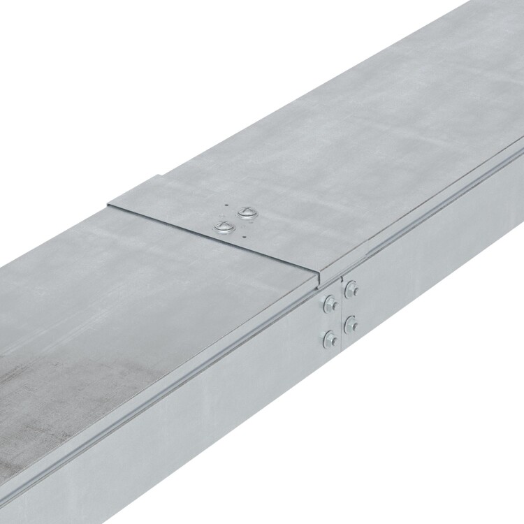 В случае, если крышка лотка была отрезан неровно и при соединении лотков с крышкой возникает стык, он может быть закрыт соединительной пластиной CGС. Накладка также применяется для дополнительного укрепления мест стыков. Исполнение – "сталь, оцинкованная по методу Сендзимира", применяется с лотками шириной 300 мм.