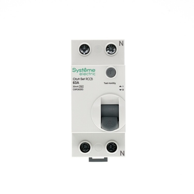 Выключатель дифференциального тока (ВДТ) и ли устройство защитного отключения (УЗО) серии City9 Set Systeme Electric, 2-полюсный, номинальный ток 63А, ток утечки 30 мА, тип АС, электромеханический. Применяется в электрических сетях напряжением 230В. Уставка по току утечки 30 мА обеспечивает гарантированную защиту людей при прямом и косвенном прикосновении. Кнопка тест обеспечивает проверку работоспособности аппарата. Крепление на DIN-рейку шириной 35 мм. Подключение сверху и снизу. Безопасные клеммы (ранее Schneider Electric Easy9 EZ9R34263).