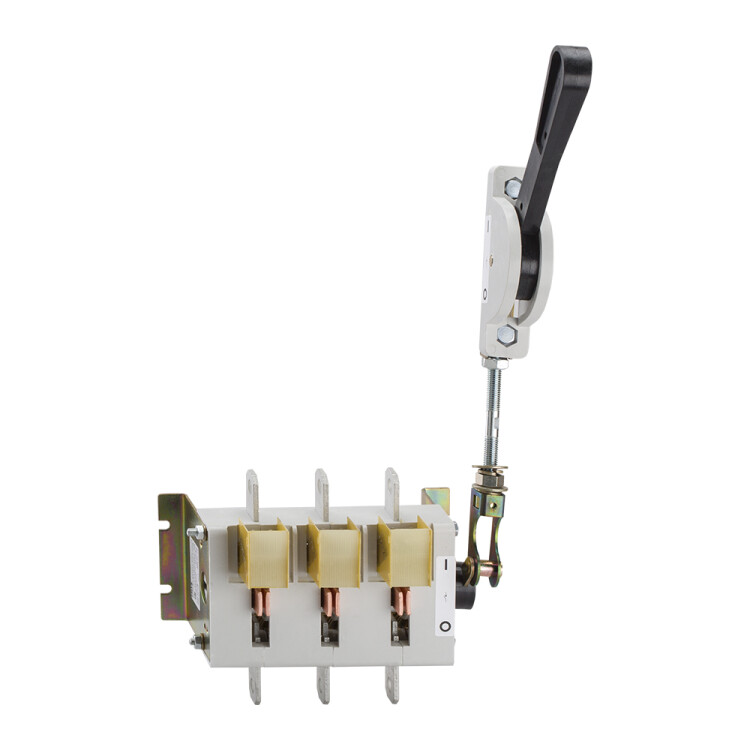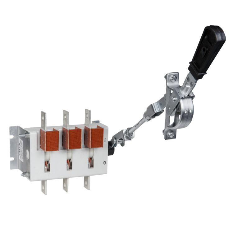 Выключатель-разъединитель 3 полюсный на номинальный ток 400 А, в котором установлена несъемная рукоятка.