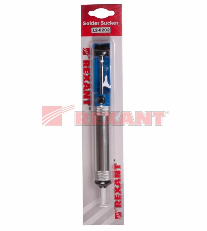 Оловоотсос для припоя, металл -экстрактор припоя REXANT служит для удаления излишков или остатков металлического припоя и флюса, которые образуются в процессе монтажа или демонтажа радиоэлементов. Представляет собой цилиндрическую трубку, с вмонтированным внутри нее поршнем, который имеет фиксатор, и при создании разряжения работает как обычный шприц. Он рассчитан на работу одной рукой. Корпус изготавливается из металла -алюминий и легко разбирается для обслуживания -смазка и очистка . Забор припоя производится посредством антистатического наконечника -диаметр 3.2 мм , который выполнен из высокотемпературного тефлона. Особенность данного оловоотсоса - специальный чистящий стержень, который удаляет остатки припоя после каждого использования, не допуская таким образом засорения канала.