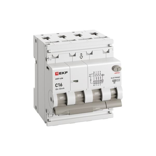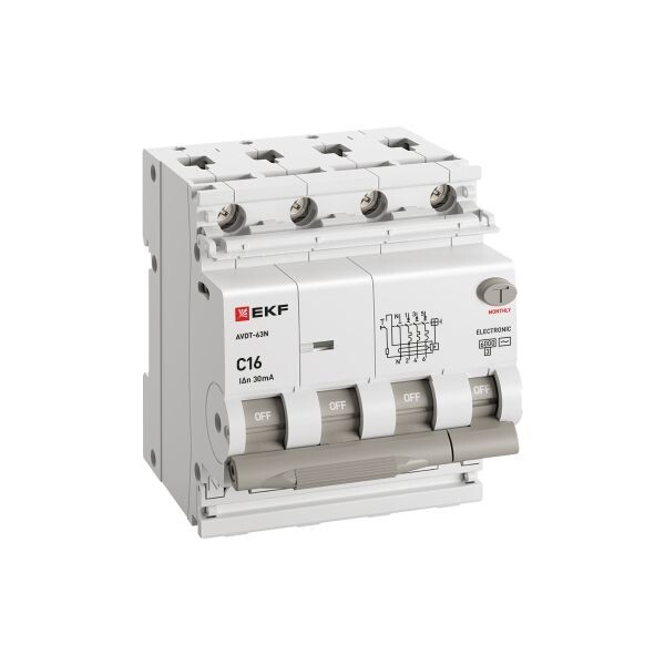 EKF PROxima Автоматический выключатель дифференциального тока АВДТ-63N 3P+N 16А 30мА характеристика C тип AC электронный 6кА.