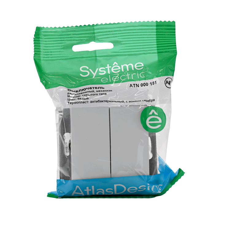 Механизм выключателя 2-клавиш ного Systeme Electric (ранее Schneider Electric) серии AtlasDesign в цвете белый подходит для сетей 250 В, на ток 10 А. Пластик с ионами серебра в белом цвете обеспечивает антибактериальный эффект. Двухклавишный выключатель позволяет управлять двумя источниками света с одной точки. Лицевые детали из качественного ABS-пластика, устойчивого к царапинам и УФ-излучению. Усиленные прямые монтажные лапки для лучшей фиксации механизма в монтажной коробке. (ранее Schneider Electric ЭУИ UNICA, ЭУИ UNICA NEW, ЭУИ ODACE MGU5.211.18ZD, NU521118, S52R211)