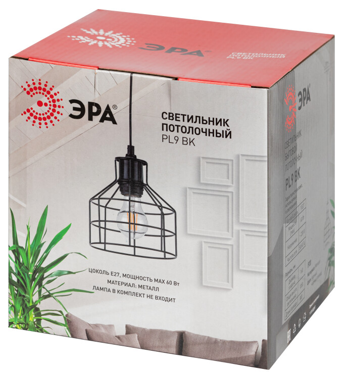 Подвесной светильник PL9 BK компании Эра отлич ается выразительным дизайном, благодаря чему органично дополнит интерьер в стиле лофт или хай-тек. Он выполнен в форме решетки черного цвета. Длинный провод позволяет размещать лампу на высоких потолках; в помещениях со стандартными потолками подобная лампа будет создавать пространство с ярким теплым светом. Модель имеет цоколь Е27, с максимальным показателем 60W, подходит для использования внутри помещений. Черный подвесной светильник впишется в интерьер кухни, столовой, кафе или магазина. Данная модель лучше всего сочетается с филаментной лампой.