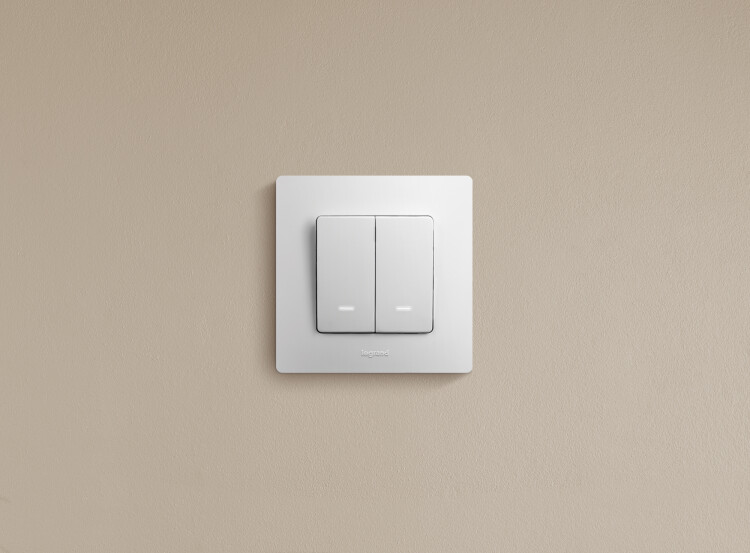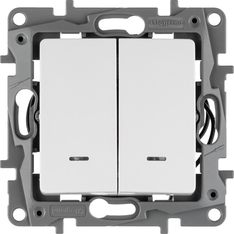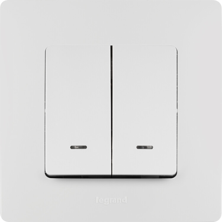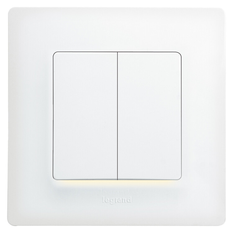 Выключатель с подсветкой двухклавишный Legrand Etika для скрытого монтажа, номинальный ток 10 А, цвет белый. Предназначен для управления двумя электрическими цепями.
