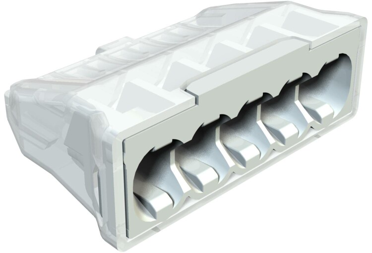Клемма без винтов для соединения однопроводных линий. Номинальное сечение: 3 x 0,5 мм² - 2,5 мм² одножильный провод 3 x 1,5 mm² - 2,5 мм² жесткий многожильный провод Номинальное напряжение 450 В Номинальный ток 24 A Длина удаления изоляции: 8-9 мм Контрольное отверстие: фазный контролер и контрольный штифт (макс. Ø 2 мм) Макс. допустимая температура окружающей среды согласно EN 60998: 90°C.