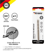 KRANZ Сверло по металлу 5х86х52 мм «Кобальт» (сталь HSS-Co 5% M35 P6M5K5) (1 шт. в блистере) DIN 338