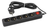ЭРА Удлинитель электрический UX-5es-3m-B с заземлением с выключателем 5 розеток 3 м ПВС 3x0,75мм2 10А черный