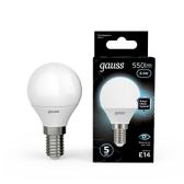 Gauss Лампа Шар 6.5W 550lm 4100K E14 LED