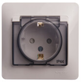 Systeme Electric Glossa Бел Розетка с/з со шторками с крышкой, IP44 (в сборе с рамкой)
