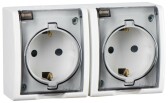 Simon 15 Aqua Белая Розетка 2-ая с/з с крышкой наружная, IP54