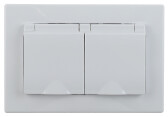 Intro Розетка Plano 1-210-01 с заземлением двойная 2х2P+E Schuko с крышкой шторками, 16А-250В, IP20, СУ, IP44, белый