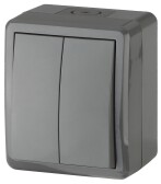 ЭРА Выключатель Эксперт 11-1404-03 двойной IP54 10АХ-250В ОУ серый