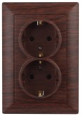 Intro Розетка Solo 4-205-10 с заземлением двойная 2X2P+E Schuko, 16А-250В, IP20, СУ, венге