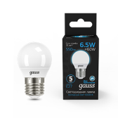 Gauss Лампа Шар 6.5W 550lm 6500K E27 LED 1/10/100