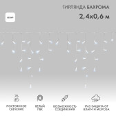 NEON-NIGHT Гирлянда Айсикл (бахрома) светодиодный, 2,4 х 0,6 м, белый провод, 230 В, диоды белые, 76 LED