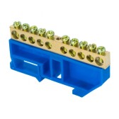 EKF PROxima Шина "0" N (6х9мм) 10 отверстий латунь синий изолятор на DIN-рейку.
